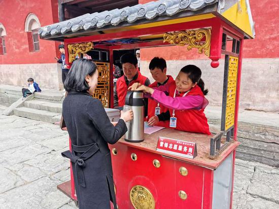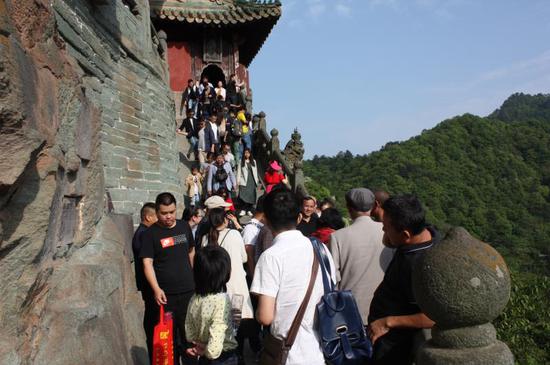 为应对“五一”小长假游客高峰,节日期间,武当山景区采用线上、线下一体化售票,减少游客排队等候时间。武当山特区领导继续分赴景区各景点,协调指挥五一假日旅游服务,旅游局、门票局、景管局、公安局、文物宗教局、安监局、交通局、城市综合执法局、社会事务局、旅游车队、索道公司全员上阵,温馨服务游客。